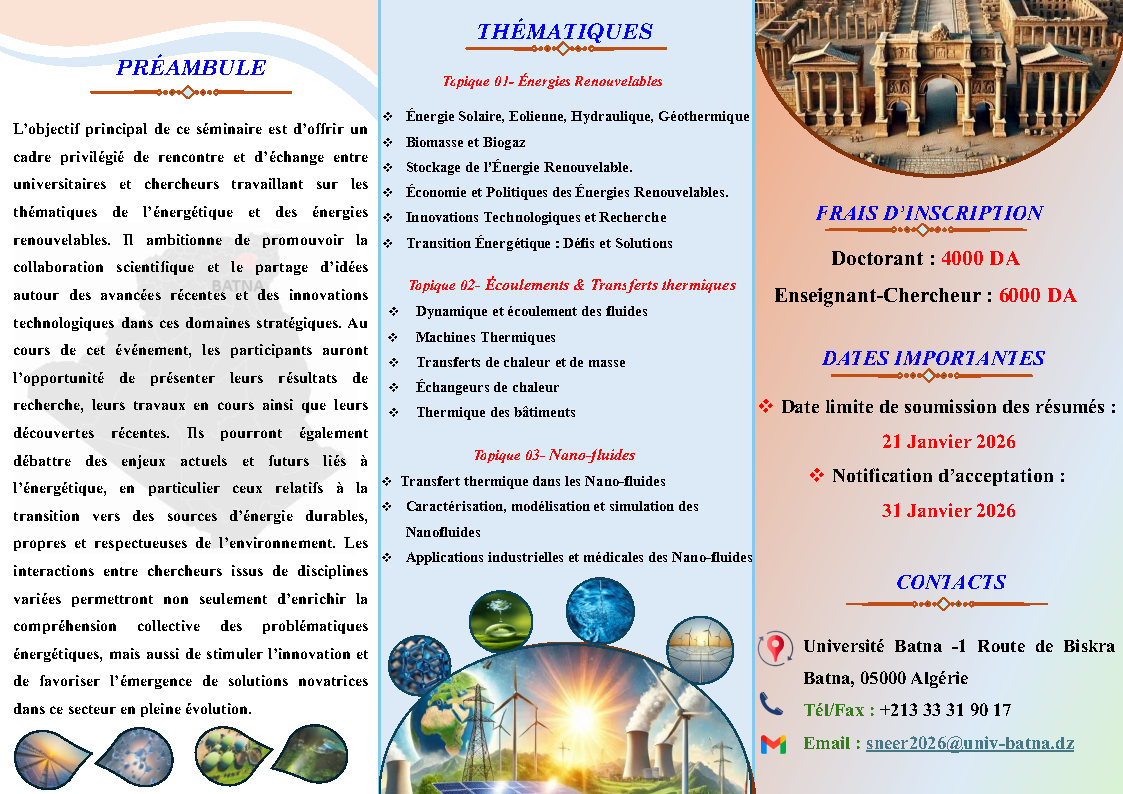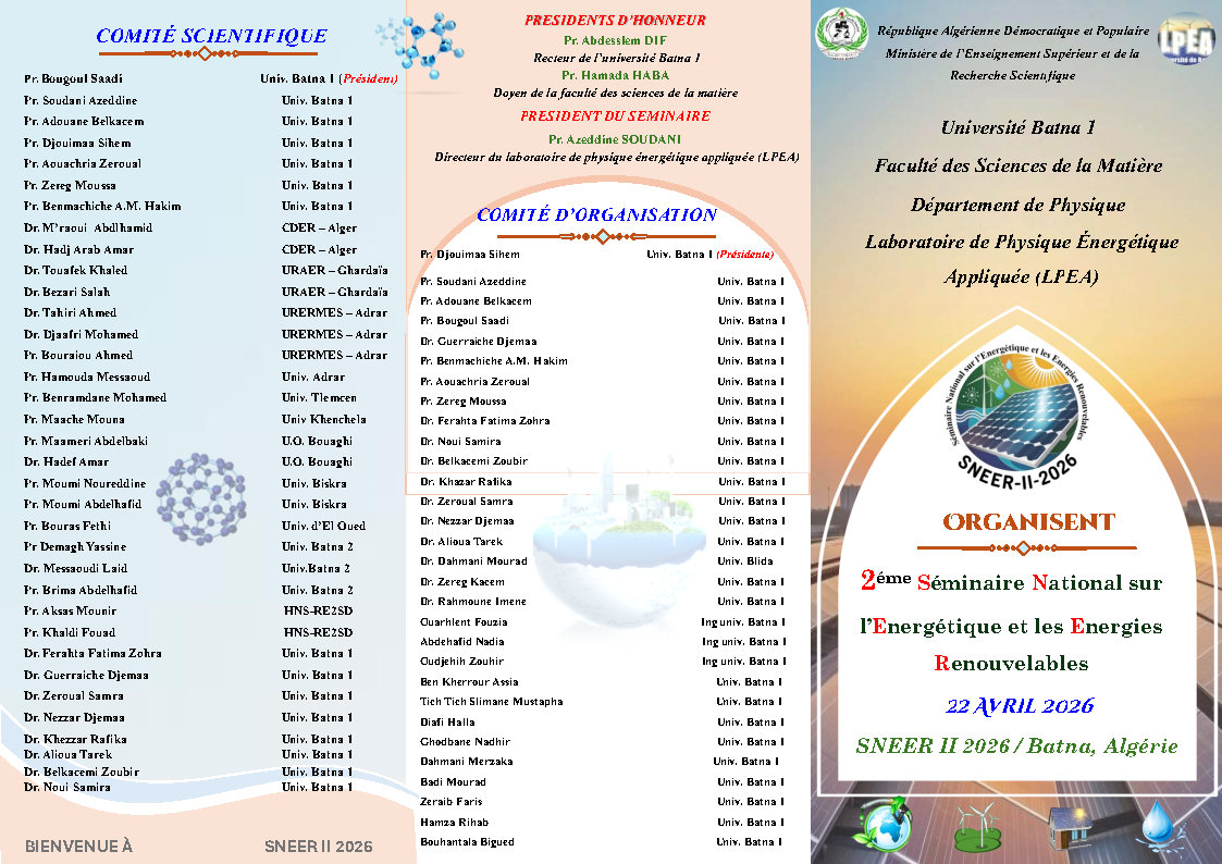 2ᵉ Séminaire National sur l’Énergétique et les Énergies Renouvelables